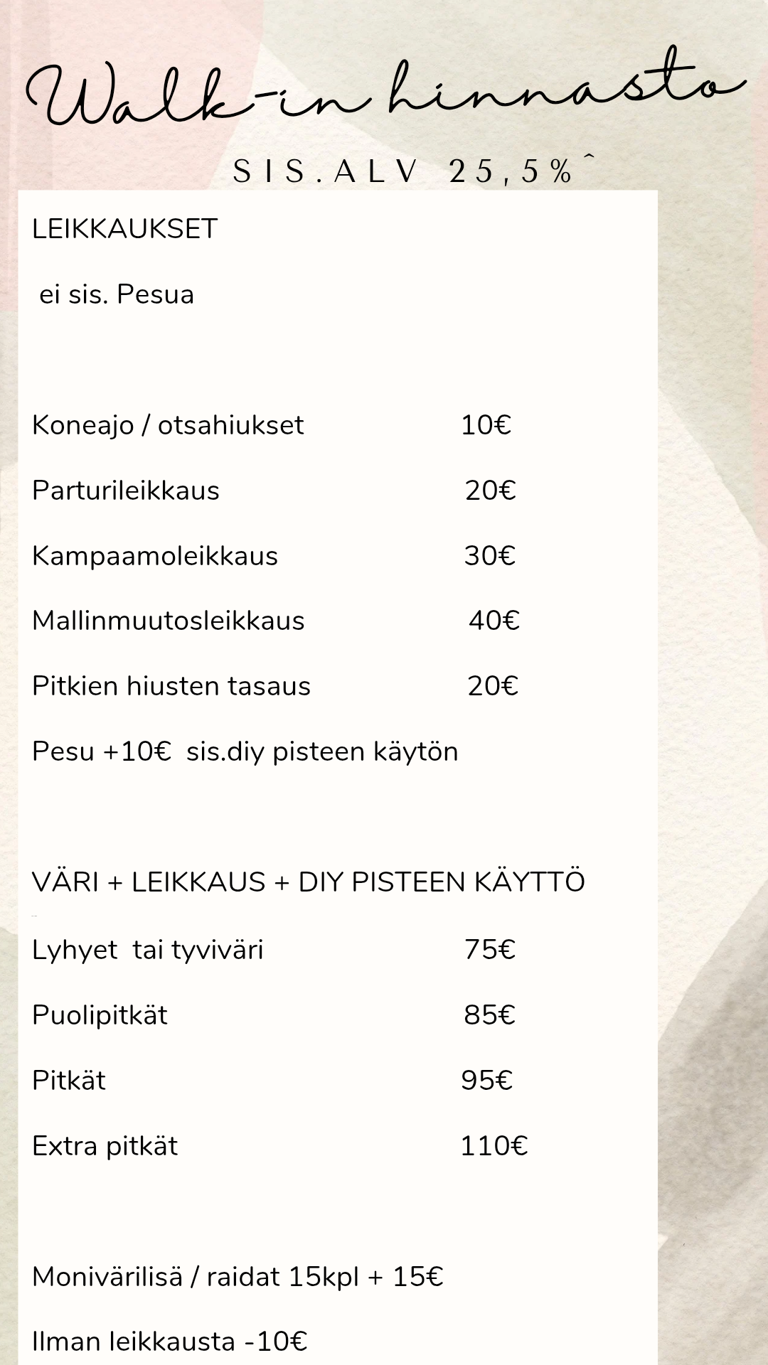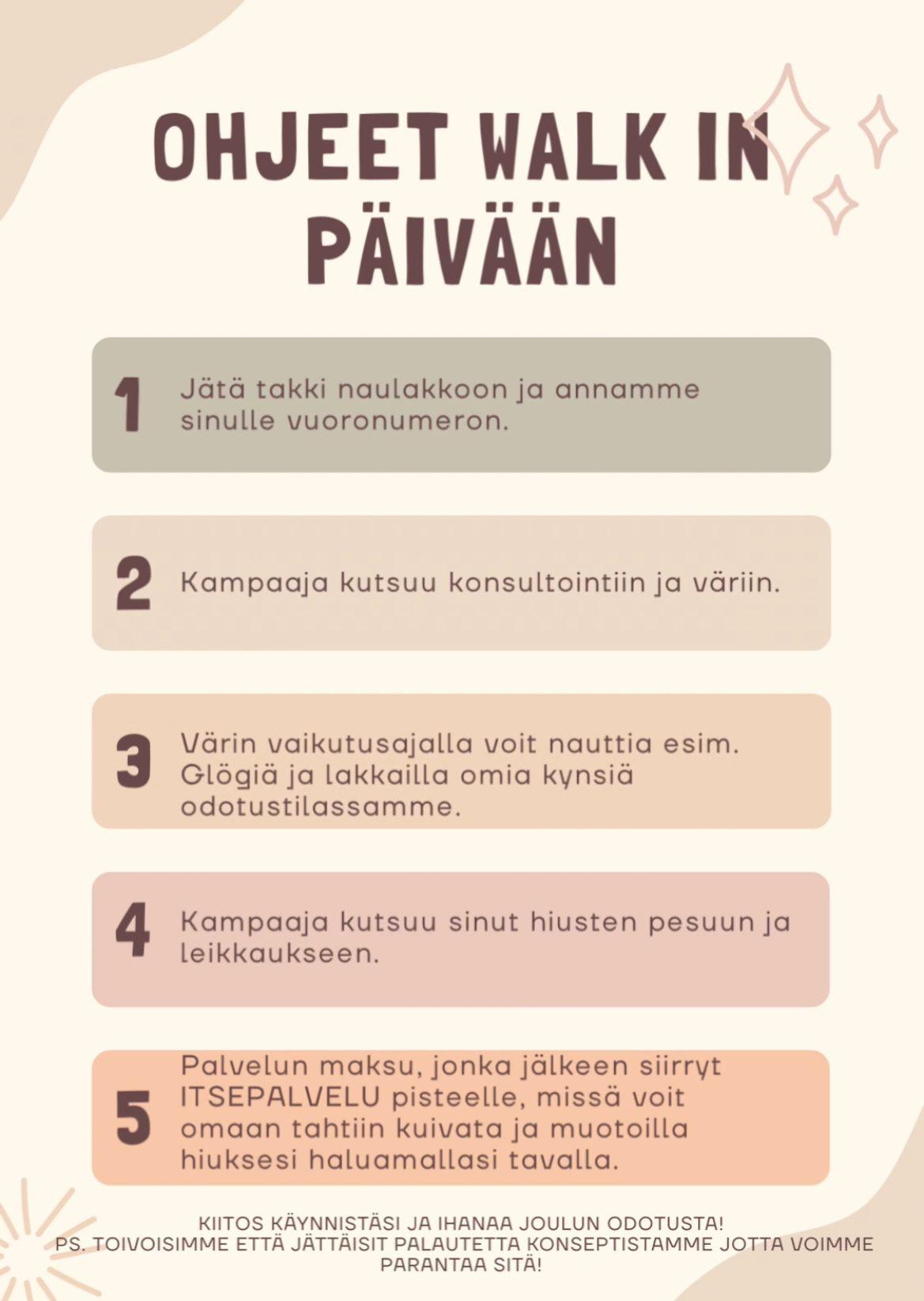 Täältä löydät lisää infoa meidän walk in päivistä sekä itseviimeistely pisteestä